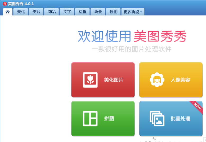 1、打开美图秀秀这款软件,进入美图秀秀的操作界面,如图所示: