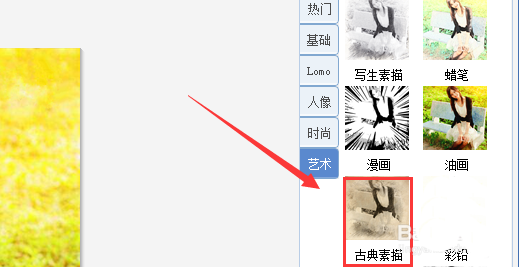 6、点击艺术选项,在其内找到古典素描选项,如图所示: