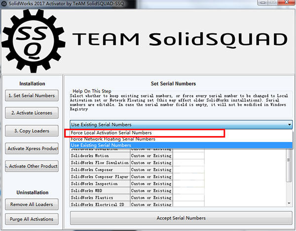 4、运行注册机“”,将选项修改为“Force Local Activation Serial Numbers”如图