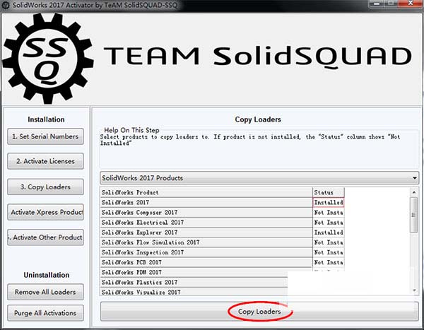 12、安装完成后,回到注册机,打开“3.Copy Loaders”项,点击“Copy Loaders”