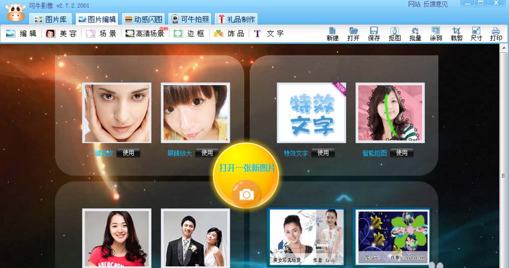 1、打开可牛影像这款软件,进入可牛影像的操作界面,如图所示: