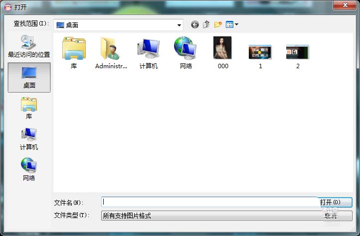 3、点击打开选项后,弹出打开图片对话框,如图所示: