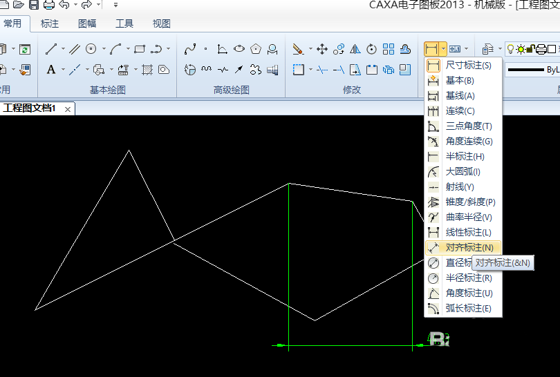 5、我们点击尺寸标注旁边那个小三角形,然后找到那个对齐标注。