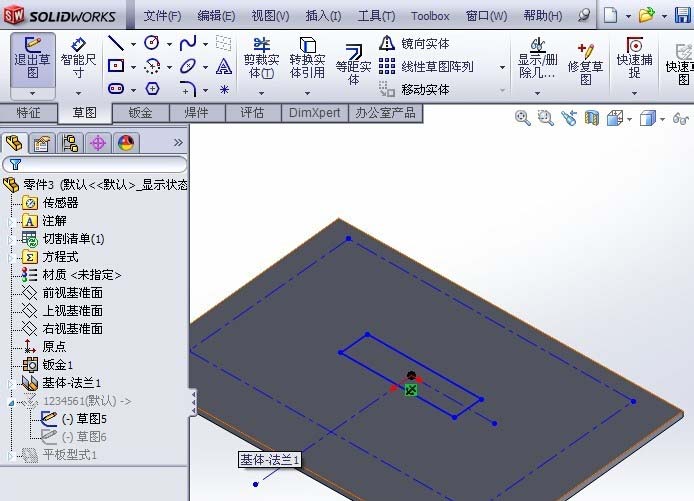 11、将刚刚创建的”命名为123456”成形工具直接拖进钣金件上,点击确认,后序进行尺寸位置标注。