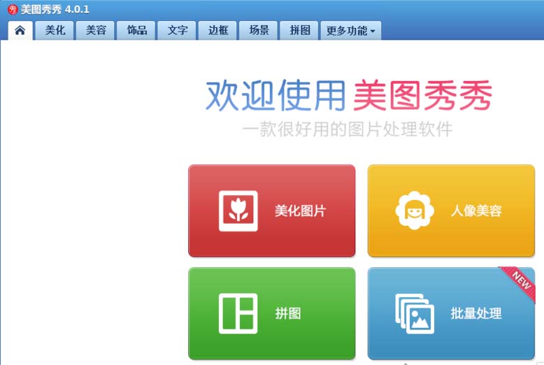 1、打开美图秀秀这款软件,进入美图秀秀的操作界面,如图所示: