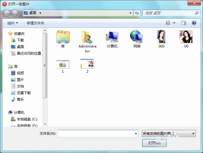 3、点击打开选项后,弹出打开一张图片对话框,如图所示: