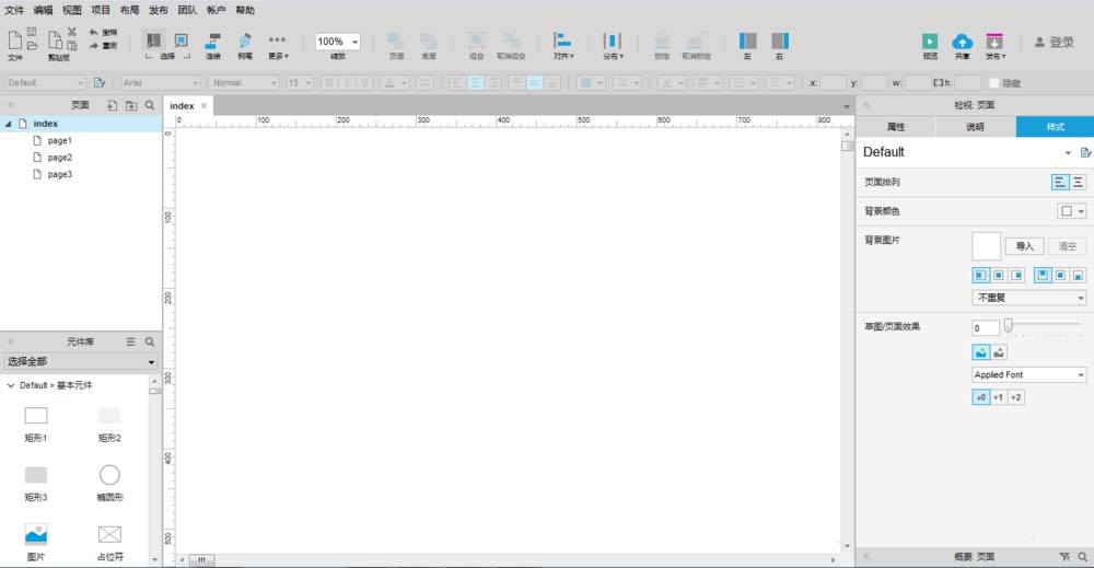 1、双击打开Axure RP 8设计软件工具,新建默认的页面,如下图所示: