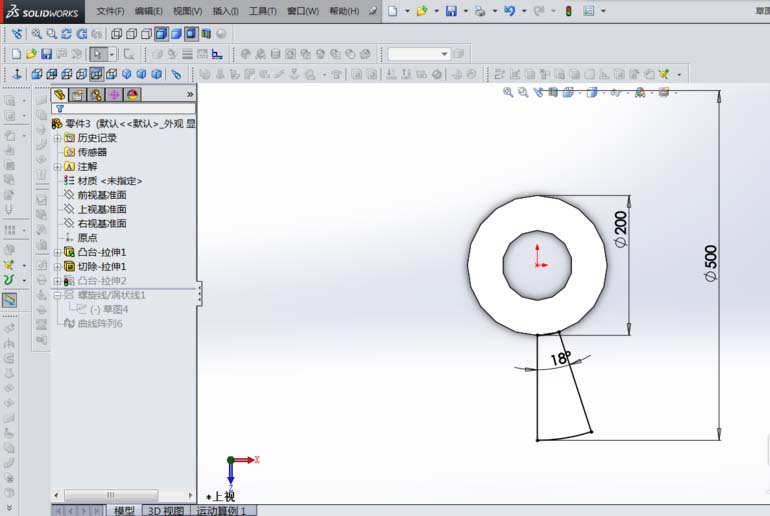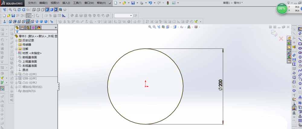 2、新建一个零件,在前视基准面上画一个直径200的圆,如下图