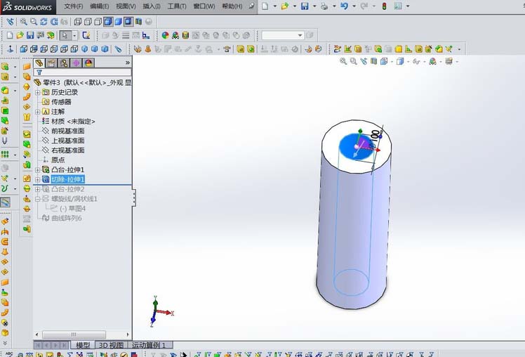 4、从中间切掉一个直径100的圆,变成一个圆环,如下图