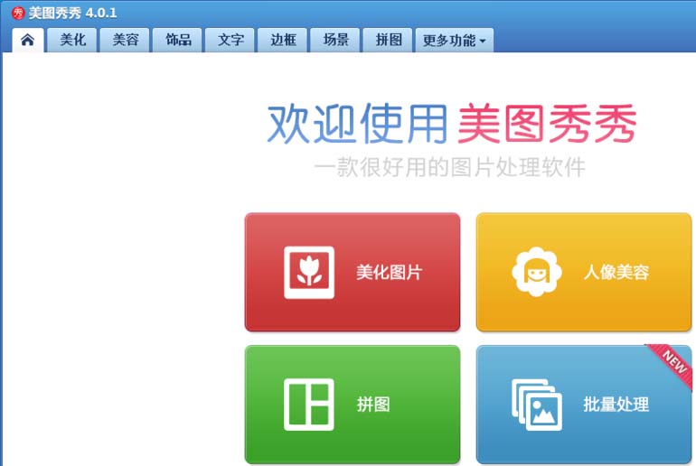 1、打开美图秀秀这款软件,进入美图秀秀的操作界面,如图所示:
