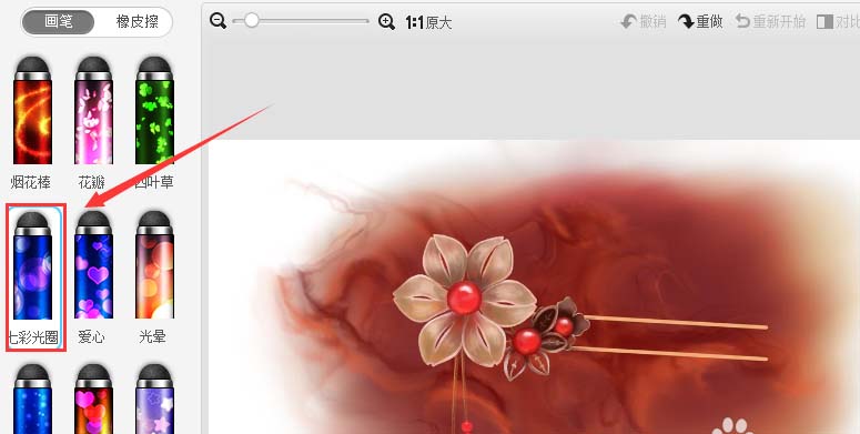6、点击魔幻笔选项,进入去编辑操作界面,在该界面内找到七彩光圈选项,如图所示: