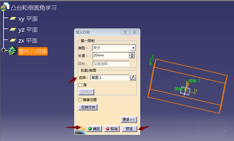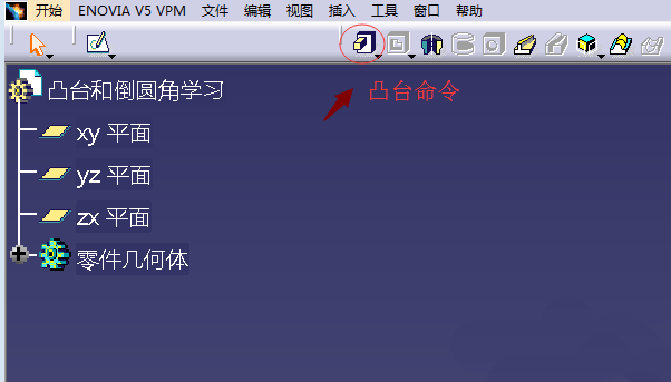 在CATIA三维软件使用过程中,凸台和倒圆角命令是使用相当频繁的,所以在这里我们优先对这部分进行讲解。