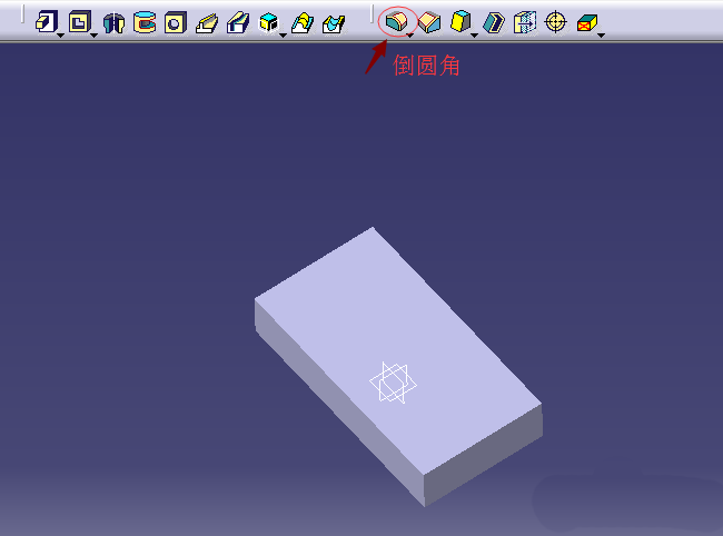 1、我们在已经绘制完成的长方体凸台上来讲解倒圆角命令。倒圆角命令的调出和隐藏和其他命令的调出和隐藏是一致的,不再赘述。