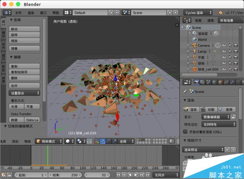 6、选择“球体”,“工具”中点击“Cell Fracture”。
