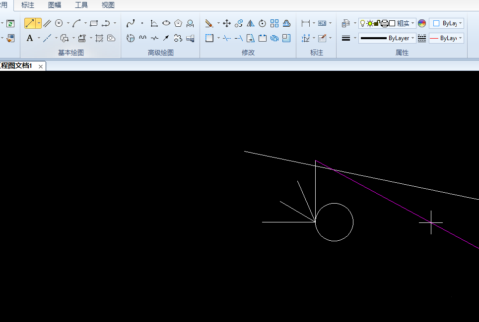 2、在基本绘图里找到直线指令,然后左端有个小三角形,点击会出现一个下拉框,在其中选择切线(法线)指令,点击曲线(圆),然后点击所要求的切点,然后输入切线长度,没有要求你就画长点,到时修剪即可。