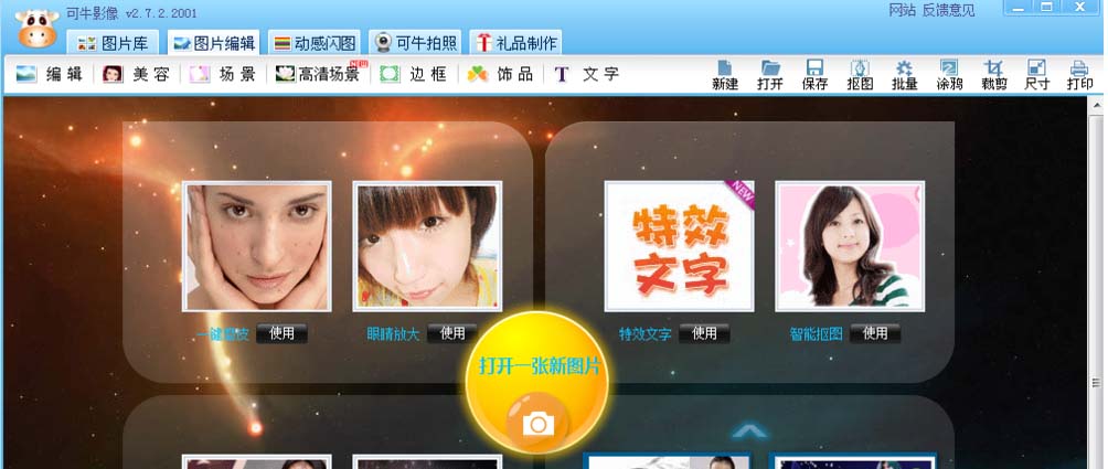 1、打开可牛影像这款软件,进入可牛影像的操作界面,如图所示: