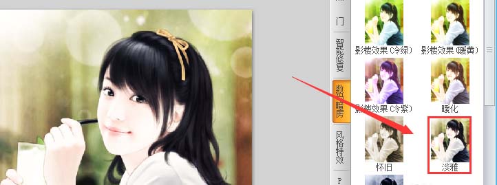 7、点击淡雅选项,我们的图片自动添加该效果,最后的图片效果,如图所示: