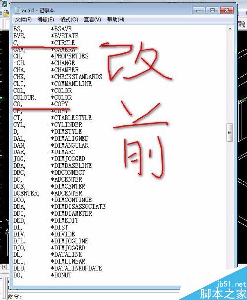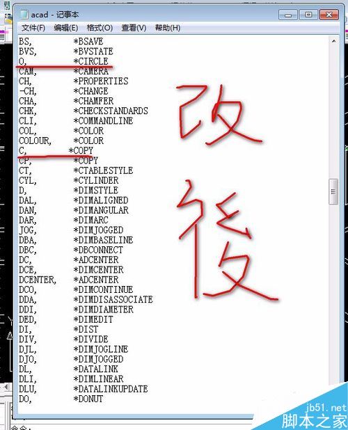 记事本下拉找到全部默认的快捷键,然后修改。改后记得保存哦,最后重启CAD!慢慢享受造图的乐趣吧...
