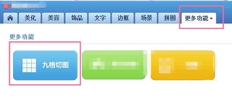 2、进入美图秀秀的软件,选择“更多功能”中的“九格切图”。