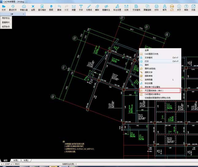 1、用CAD快速看图打开需要转t3的图纸。点击VIP按钮中的“天正图纸转换(转t3)”按钮。或者直接在图纸上点右键出现菜单,选择转t3。
