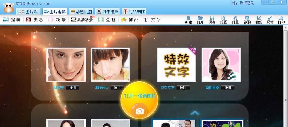 1、打开可牛影像这款软件,进入可牛影像的操作界面,如图所示: