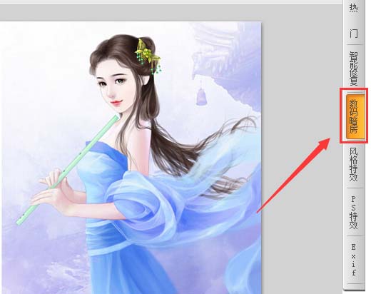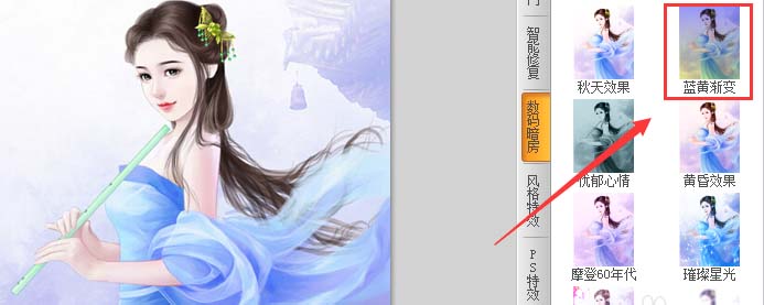6、点击数码暗房选项,在其内找到蓝黄渐变选项,如图所示: