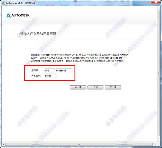 8、输入序列号“066-066666666”,输入密钥“507J1”