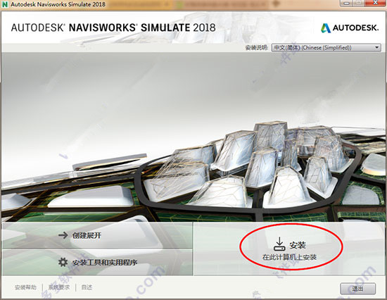2、解压完毕后自动弹出安装界面,字体默认为简体中文,点击“安装”