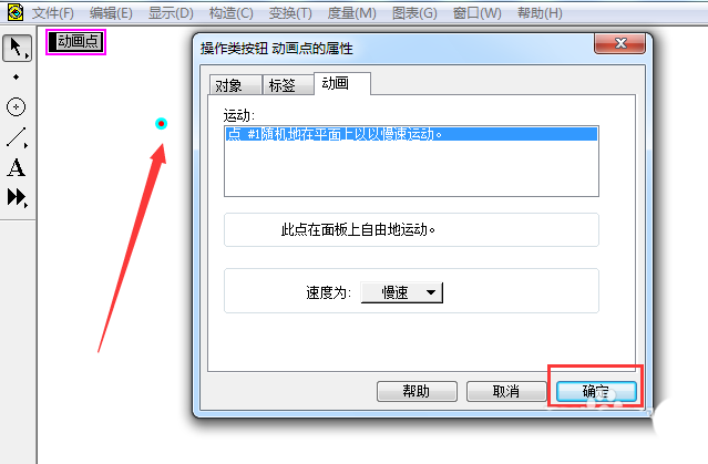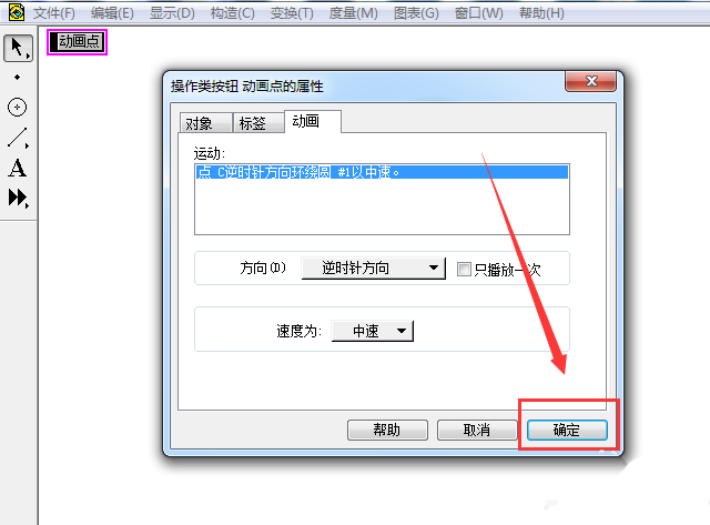 1、先来体验一下追踪功能。在工作区画一个点,选中这个点,单击编辑---操作类按钮---动画。