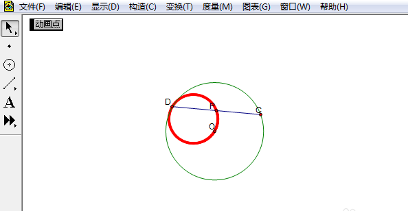 12、同样的把点D移到圆的内部,按下动画按钮,点P画出了一个与已知圆内含的圆。