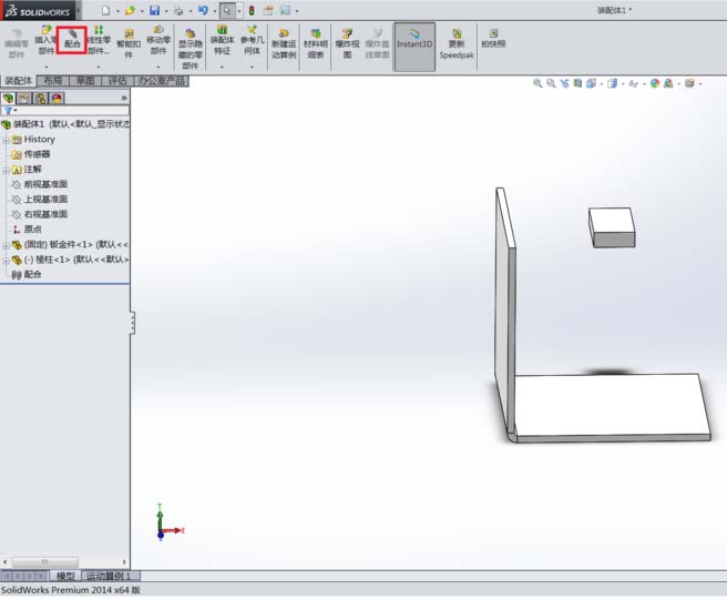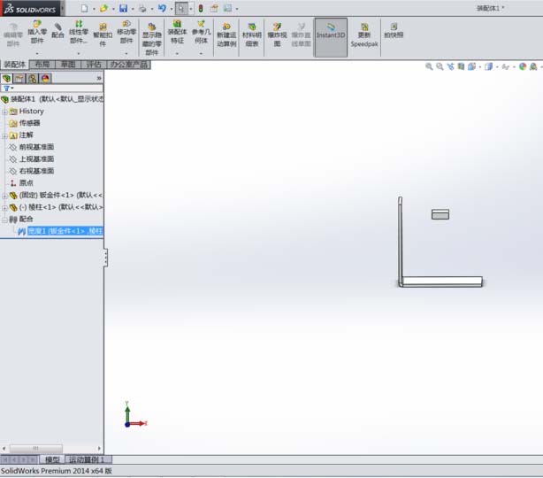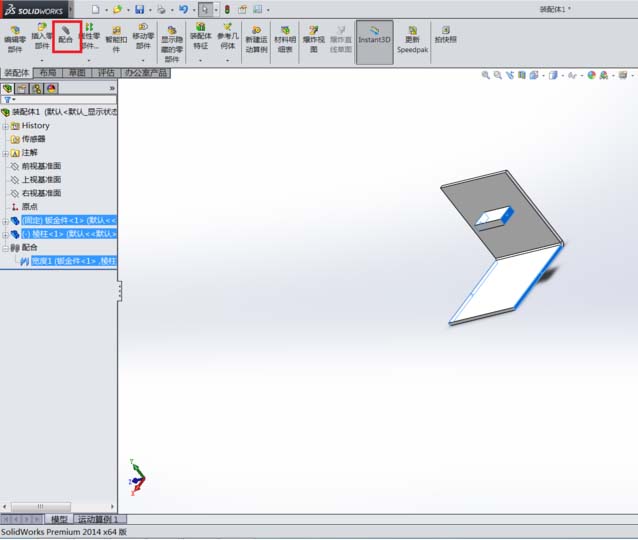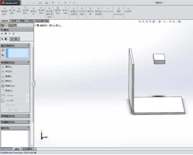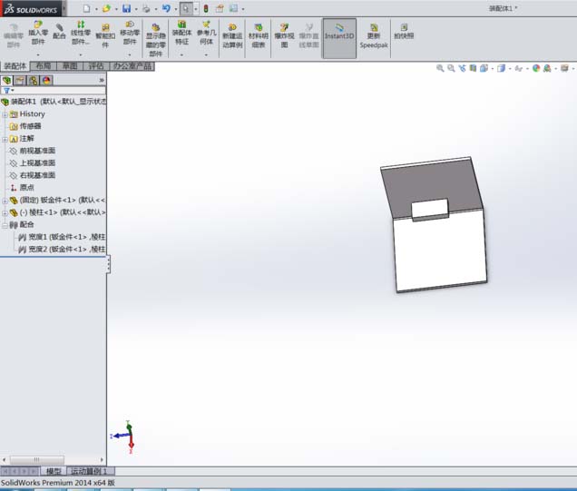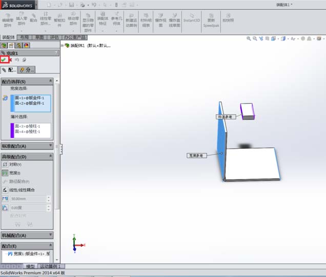 3、完成装配:配合关系完成,单击“√”退出配合界面。即可看到两个零件左右为等宽。