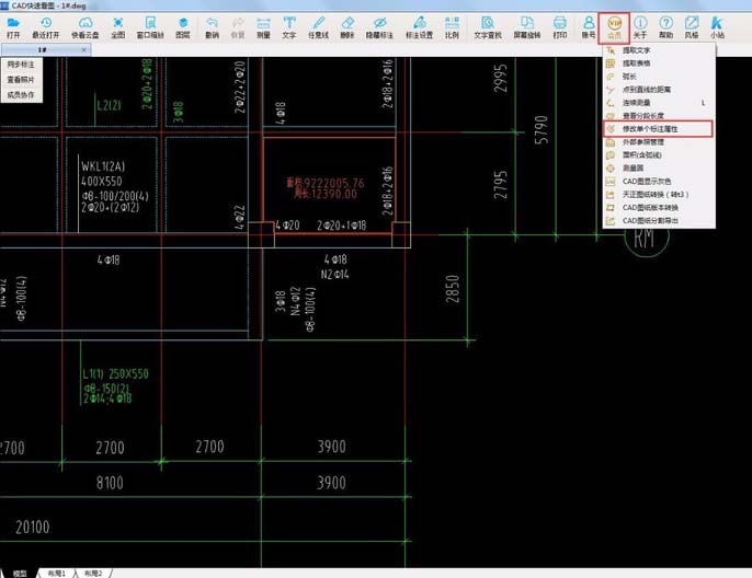 1、对于已经做好的标注,可以点击VIP按钮中的“修改单个标注属性”来修改颜色和文字大小。或者在图纸上右键,出现右键菜单,选择“修改单个标注属性”。