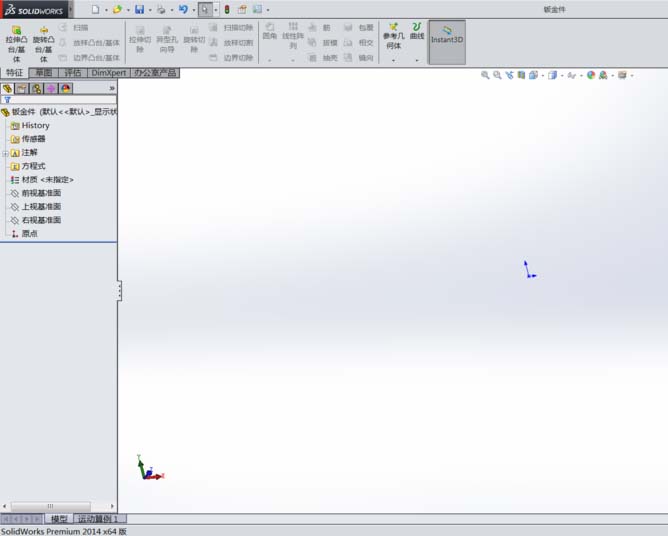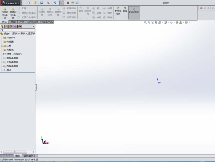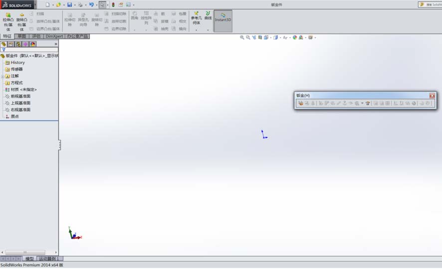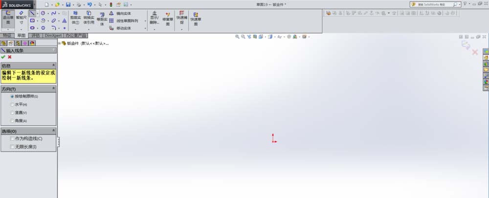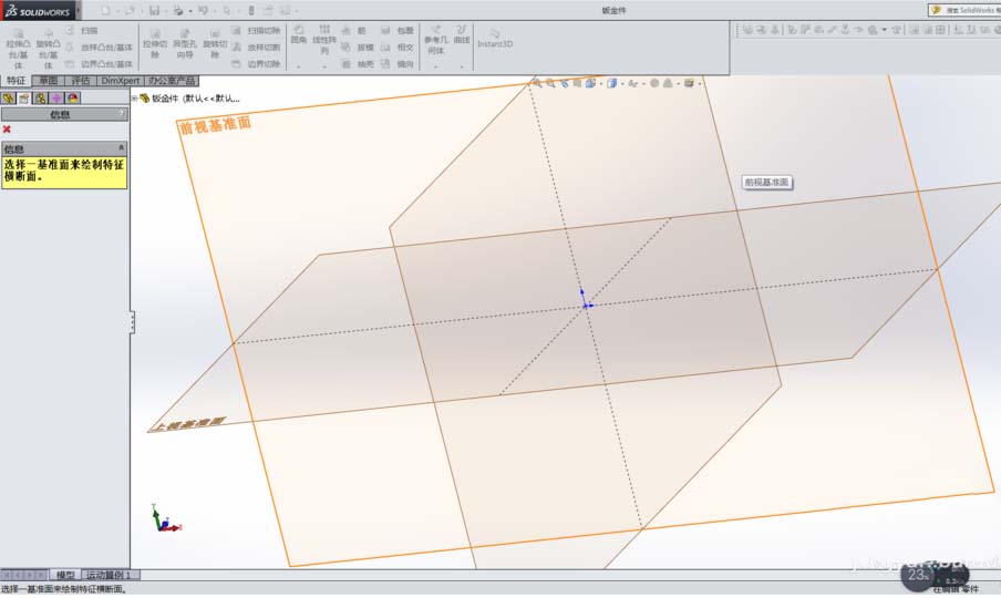 4、选择钣金绘制基准面:单击钣金--前视基准面,即进入草图绘制界面。