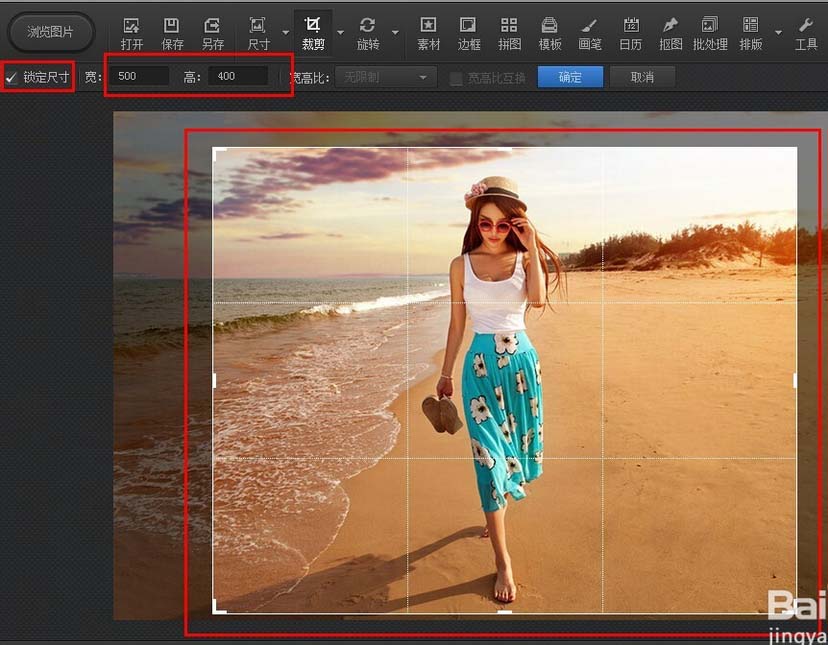 6、可以“锁定尺寸”,当你在图片上进行裁剪时,宽与高的数值不会变。