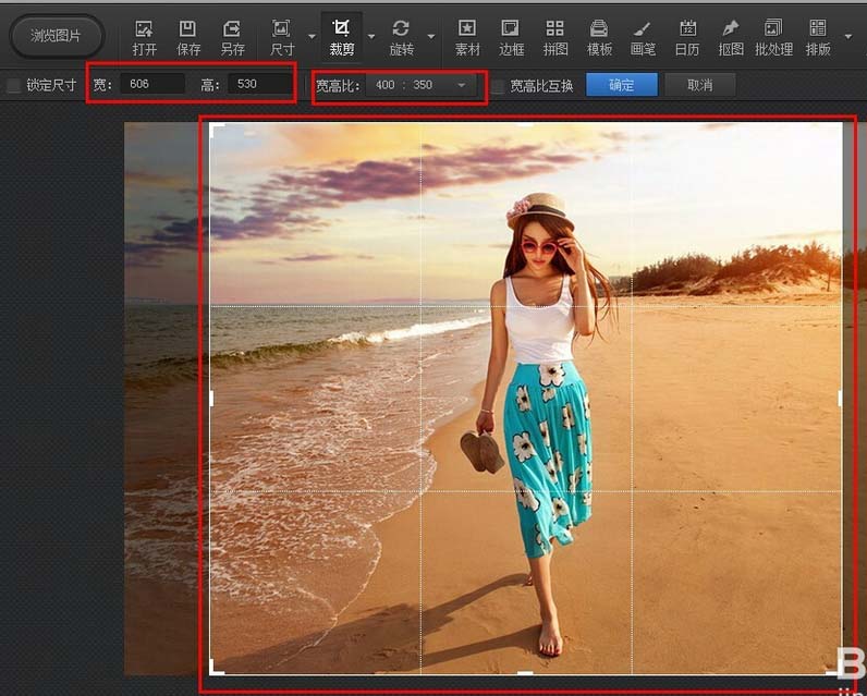 11、用裁剪工具进行剪切,宽高比右侧的数值会随着裁剪的范围而改变,但它们的比例会等于右侧的宽高比。