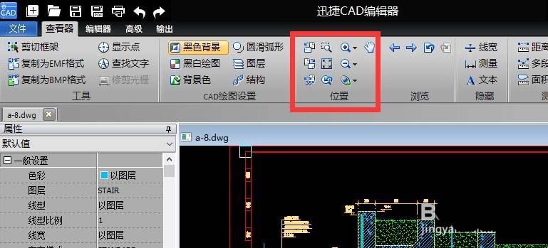 利用任意一款CAD查看器就可以对DWG工程图纸进行查看及打印操作了。如图所示,点击“位置”列表中相应的工具就可以对DWG工程进行相应的查看操作了。