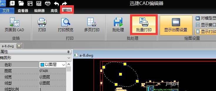 1、切换到“输出”选项卡,点击“批量打印”按钮。