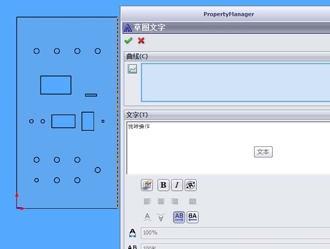 2、选择草图特征命令,并打开“文字”命令