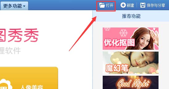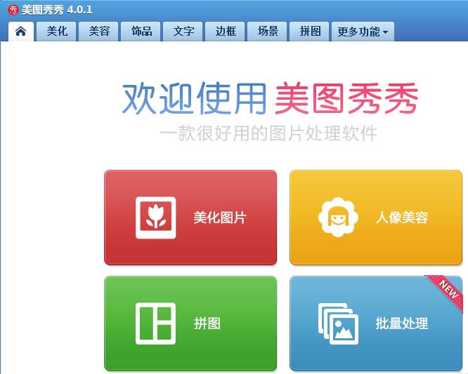 1、打开美图秀秀这款软件,进入美图秀秀的操作界面,如图所示: