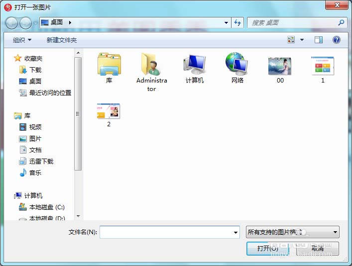 3、点击打开选项,弹出打开一张图片对话框,如图所示: