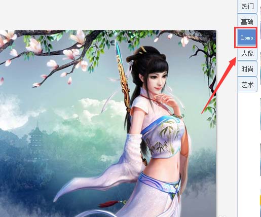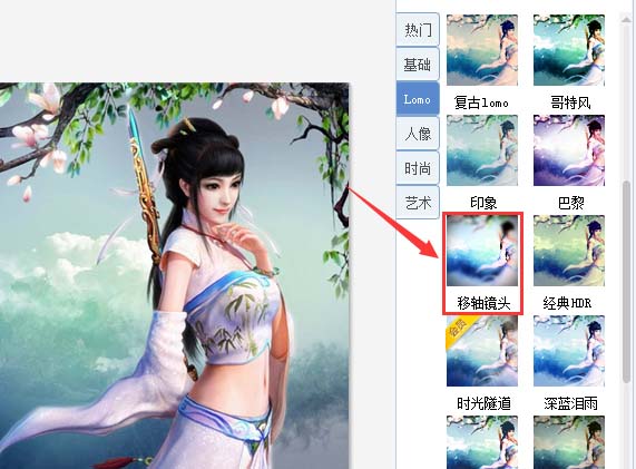 6、点击LOMO选项,在其内找到移轴镜头选项,如图所示: