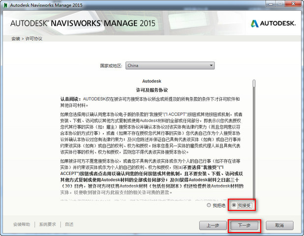 7、断开网络或拔掉网线,打开桌面上“Navisworks Manage 2015”快捷图标,弹出界面,点“我同意”。