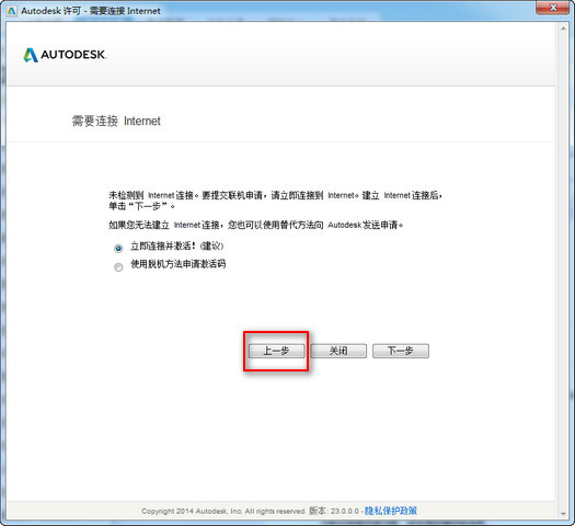 9、出现界面点击上一步,返回激活界面再次点击“激活”
