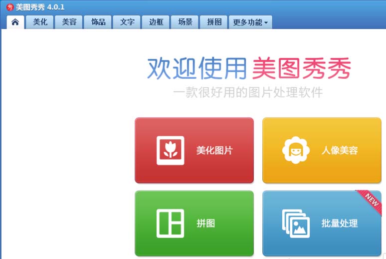 1、打开美图秀秀这款软件,进入美图秀秀的操作界面,如图所示: