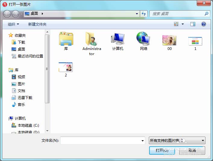 3、点击打开选项,弹出打开一张图片对话框,如图所示: