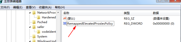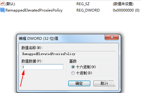 3、在右边空白处右键,新建一个32位的Dword值,名称改为“RemappedElevatedProxiesPolicy”,值为1;如下图所示: