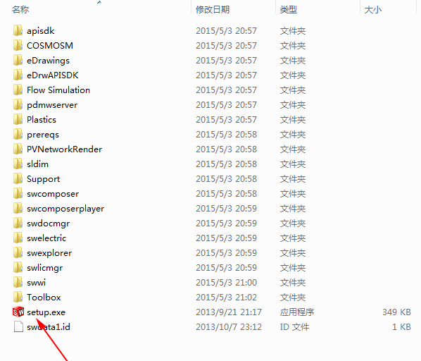 4、点solidworks安装文件中的setup.exe,选着修复安装Solidworks ;