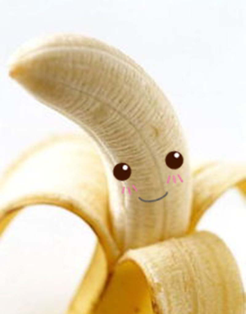 6、把可爱神态调到香蕉上,根据【素材编辑框】调节神态的大小和位置。萌萌哒”的香蕉图片做好了,如图。