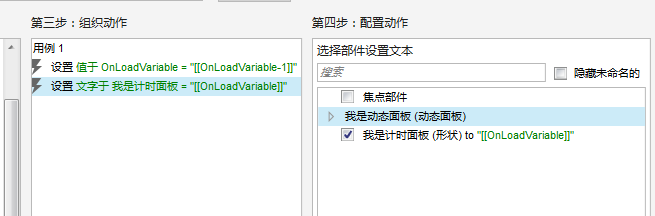 2、对这个动态面板添加事件:当动态面板状态变更时,令系统的临时变量OnLoadVariable的值-1,之后再把这个值赋给刚刚的计时器矩形;