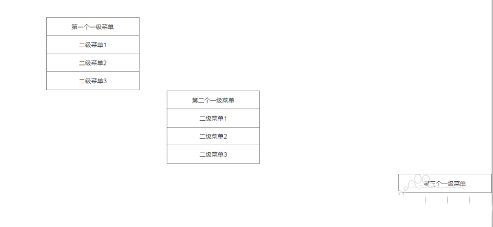 8、最后,调整各个面板的位置,统一对齐后,效果如图,此时就完成了三级菜单下拉显示的效果了